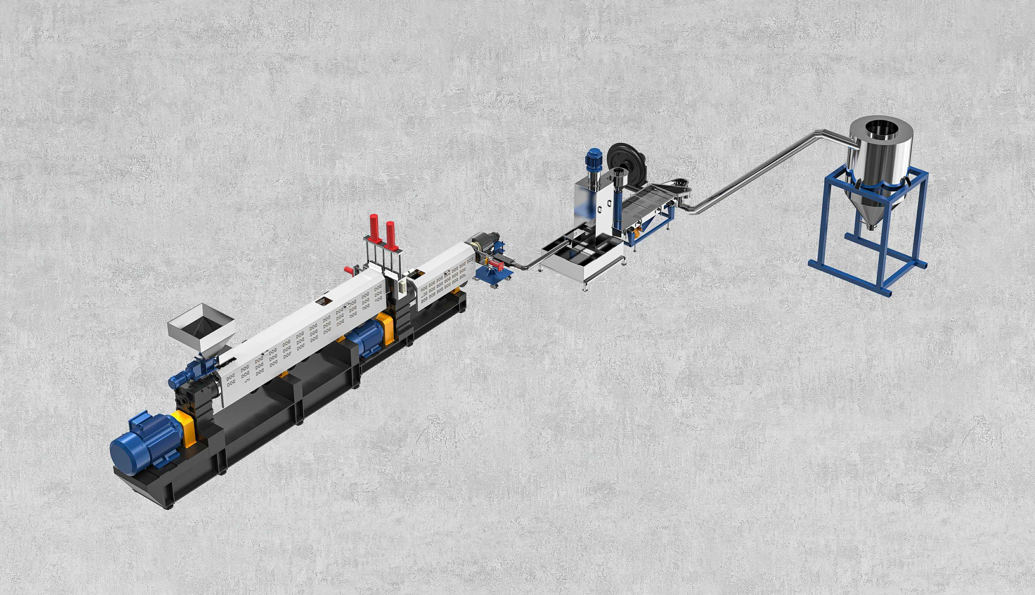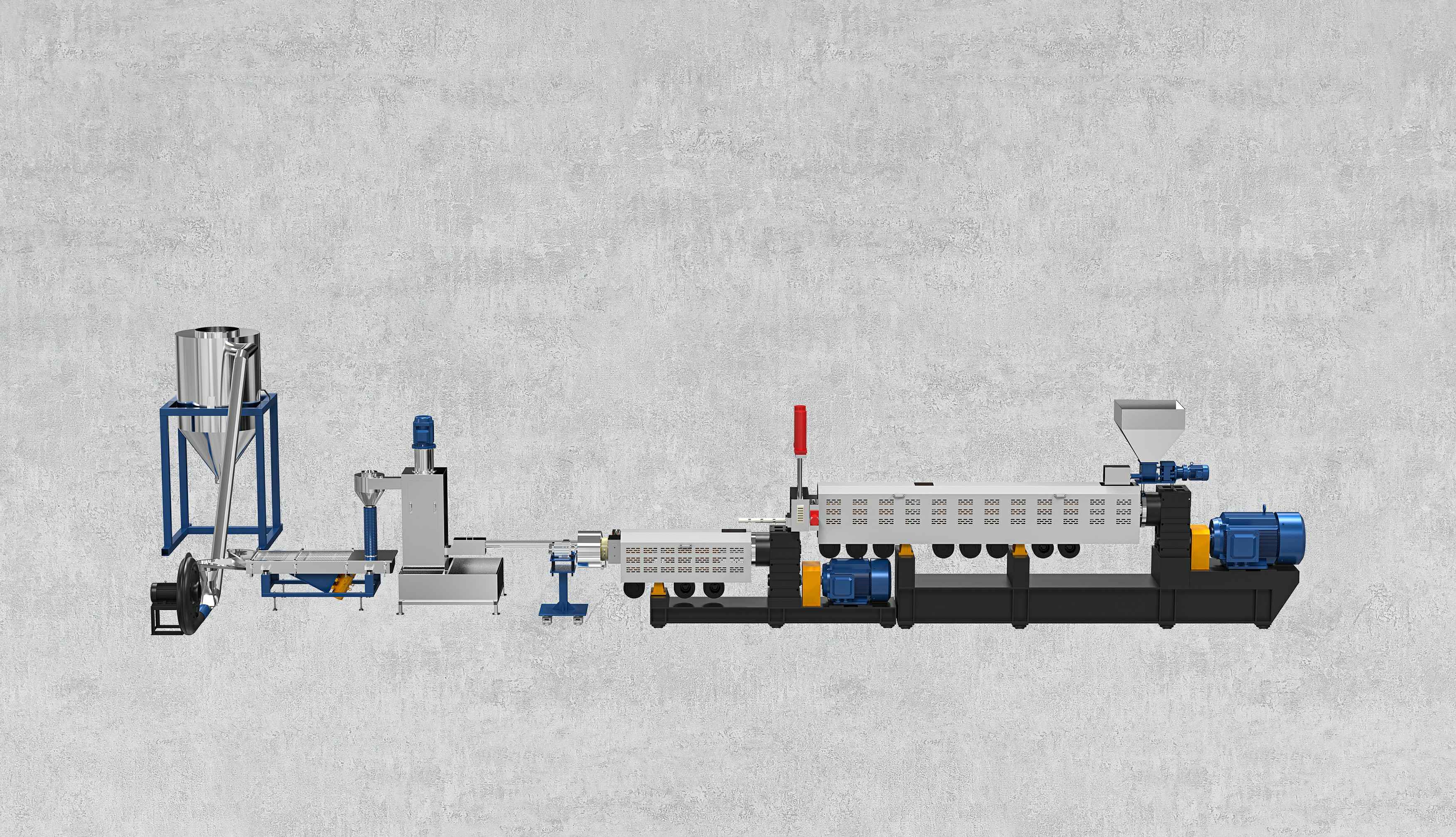 減速箱采用硬齒面、高扭矩設計,運行平穩無噪音,螺桿根據物料特性特殊設計,螺桿和機筒采用優質氮化鋼或雙合金材質,大大增加設備使用壽命。機筒上采用真空排氣或自然排氣口的設計,能在生產過程中將水分,廢氣排走,使出料更穩定,顆粒更結實,成品顆粒外觀更漂亮。