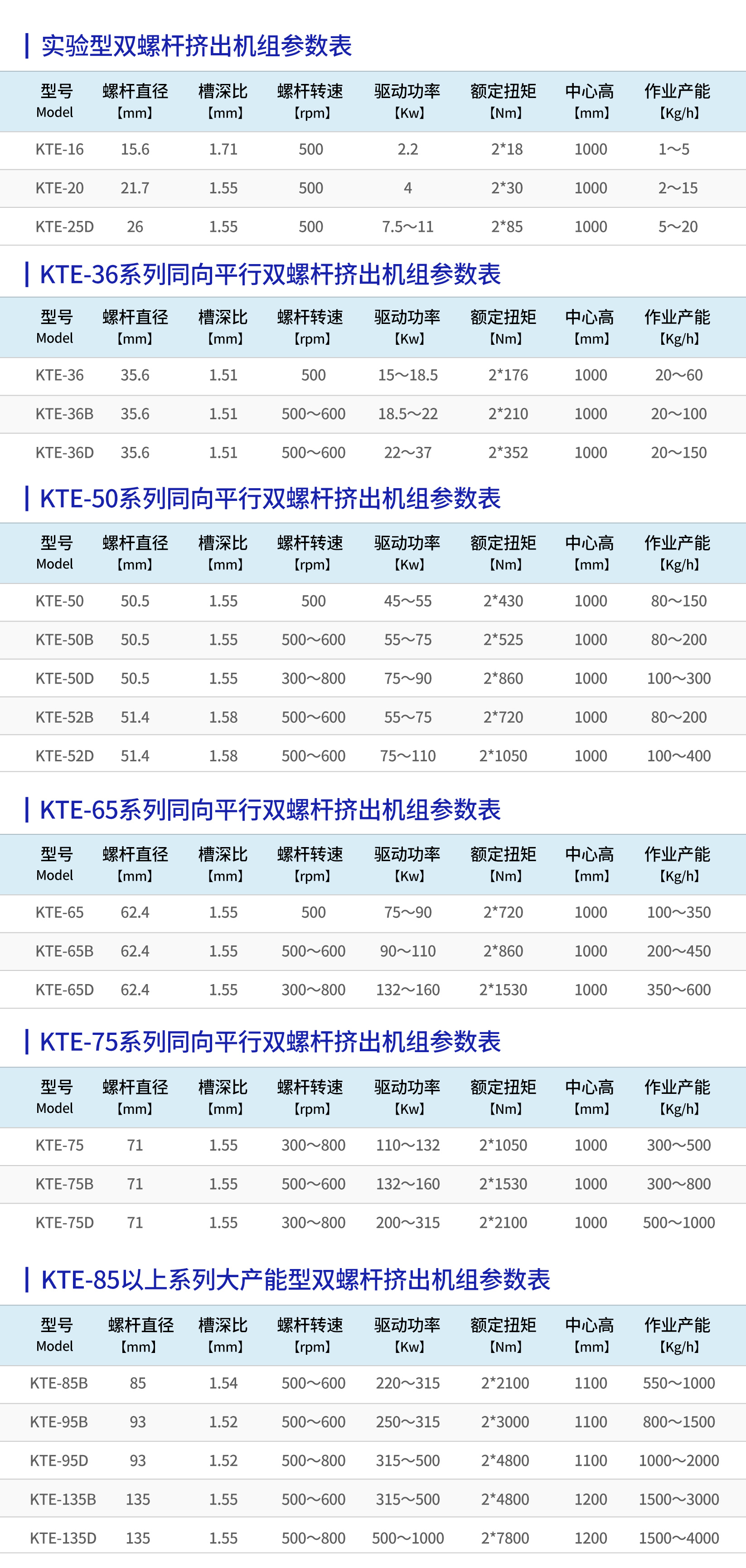 同向平行雙螺桿擠出機機筒、螺桿采用積木式原理設計制造,根據(jù)加工物料體系與工藝配方要求其長徑比機筒結構、螺桿排列、排氣數(shù)量位置、加料方式、電器控制方式等,均可優(yōu)化合理配置。實現(xiàn)多功能、多用途來適應加工高分子材料。
